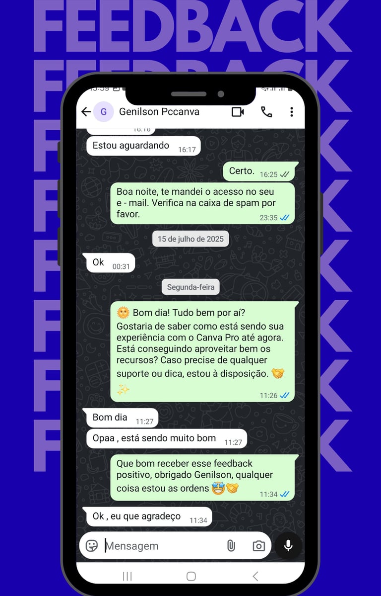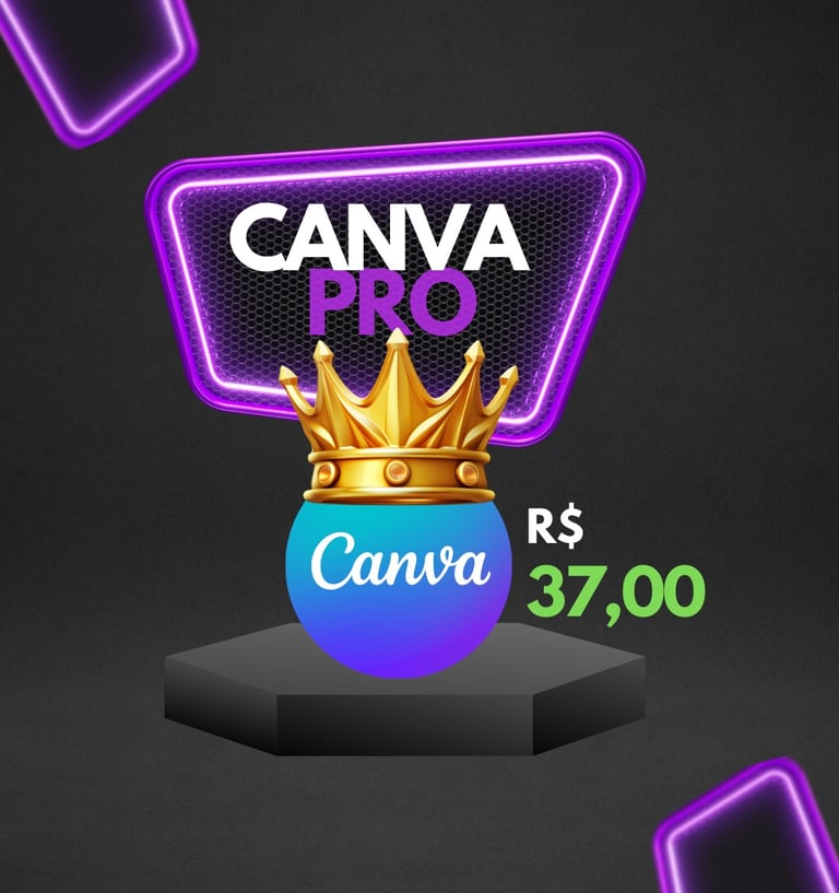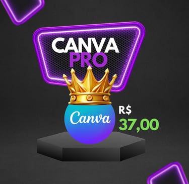 Canva Pro por um ano, 7 dias de garantia e acesso direto em seu e - mail, pagamento único de 37,00 reais.